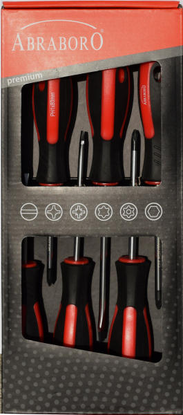 ABRABORO csavarhúzó készlet SL+PH+PZ 6 részes az iSzerszámnál. ABRABORO prémium minőségű 6 részes csavarhúzó készlet. A készlet tartalma 1-1 db a következő típusokban és méretekben: