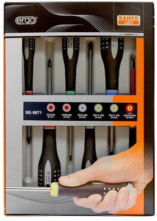 Bahco ERGO csavarhúzó készlet, 6 darabos Hornyolt, Phillips, Pozidriv és TORX ® csavarokhoz (BE-9871) (BE-9871)
