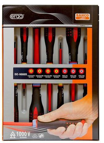 Bahco Szigetelt ERGO csavarhúzó készlet, 7 db Hornyolt: 0.4-0.5-0.8-1 és Pozidriv 0 & 2 & 3 (BE-9888S) (BE-9888S)