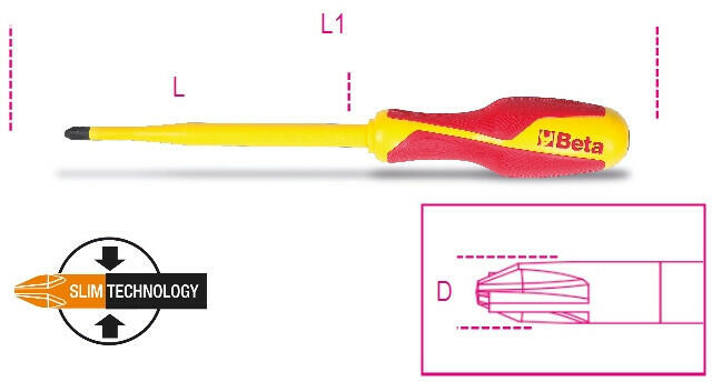 Beta 1275MQ/C, kombinált csavarhúzó PH kereszthornyos + egyenes hornyú csavarokhoz, PH2+LPP Beta által gyártott szigetelt szerszámok tervezésénél az elektromossággal kapcsolatos előírásokat tartották szem előtt. Minden szigetelt szerszám lehetővé teszi a munkát feszültség alatti berendezéseken: váltóáramnál 1000 V alatti , egyenáram esetén 1500 V alatti feszültségig. A minőség, a teljesítmény és a használat biztonsága megfelel a 60900-as szabvány előrásainak, minden