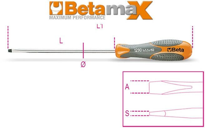 A KÉP CSAK ILLUSZTRÁCIÓ! JELLEMZŐK: BetaMax csavarhúzó TECHNIKAI SPECIFIKÁCIÓK: SxAxL mm1,2x6,5x100 L1 mm220 Ø mm6,0