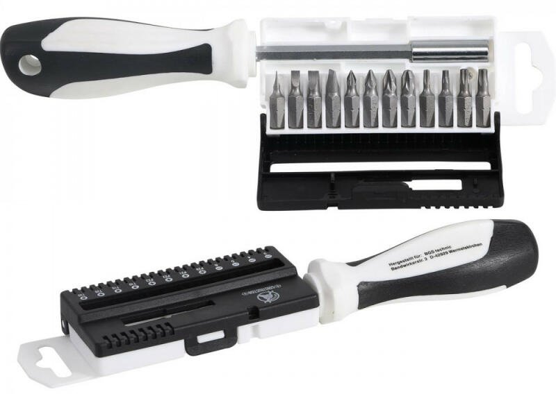 Kényelmesen és sokoldalúan használható csavarhúzó ergonomikus markolattal. Praktikus, csavarhúzóra rögzíthető bit tartó doboz. Bitek:3 db lapos fejű bit: 3 - 4 - 5 - 6 mm3 db kereszthornyú bit: PZ 0 - 1 - 2 - 33 db Torx bit: T 10 - 15 - 20 - 25A Kraftmann termékeinket szintén a német BGS Technic® gyártócég állítja elő, árban azonban még kedvezőbb alternatívát jelent a szerszámpiacon. A BGS Technic® márka az 1970 évi első gyártás óta Németországban és több, mint 80 országban világszerte kiváló minőséget, valamint az innovatív újdonságok sokaságát fémjelzi és kiváló hírnévnek örvend vevőink körében. A termékválasztékunkban csúcsminőségű, továbbá teherbíró kézi-, pneumatikus- és elektromos szerszámok szerepelnek a mindennapi a műhelymunkához, továbbá ipari használatra.