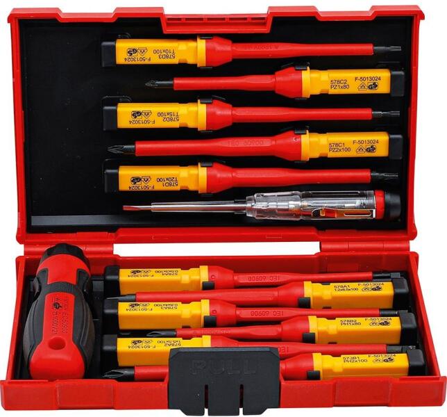 Termékadatok: VDE markolat cserélhető pengetartóval, 2 komponensű markolattal 4 lapos csavarhúzó: 1,2 x 6,5 x 100 mm 1,0 x 5,5 x 100 mm 0,8 x 4,0 x 100 mm 0,5 x 3,0 x 100 mm 3 torx csavarhúzó: T10 x 100 mm T15 x 100 mm T20 x 100 mm 1 db: Philips csavarhúzó: PH2 x 100 mm 1 db: Philips csavarhúzó: PH2 x 100 mm 1 db: Pozidriv csavarhúzó: PZ2 x 100 mm 1 db: Pozidriv csavarhúzó: PZ1 x 80 mm 1 db: Feszültségmérő: 120 - 250 V, 140 mm Anyaga: CrV
