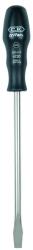 Króm-vanádium acélötvözet csavarhúzó, szilánkmentes műanyag nyéllel. Hagyományos, szélesedő fejű lapos csavarhúzó [flared tip].