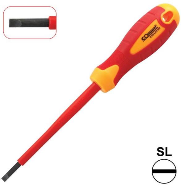 COMMEL VDE Lapos csavarhúzó, SL 4x100mm, szigetelt, 1000V (370-204) Termék információ: