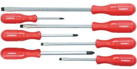 Jó fogást biztosító, öntött, recézett, piros színű markolat. Átmenő, króm-vanádium acélpenge, lekerekített, kalapáccsal üthető véggel. Ideális beragadt csavarok meglazításához. Edzett és köszörült acél ötvözetből készült mágneses penge. Kör illetve hatszög acélból.
