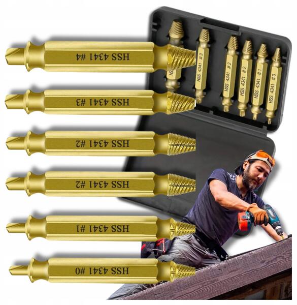 Csavarhúzók törött csavarokhoz 6db-os Csavar tok szett (Komplet wykrętaków do śrub urwanych 6 sztuk)