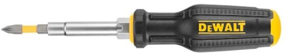 DWHT66569-0 *DEWALT Csavarhúzó, Max Fit, 6 in 1, többfejes *Kialakítás: többfunkciós kialakítás 6 az 1-ben csavarozási megoldással *Markolat: ergonomikus, csúszásmentes, puha fogású *Bithosszabbító: mágneses, a biztos bitmegtartásért *Tartozékok: 3 db kétvégű bit (lapos, PH, PZ, torx kombináció) *Alkalmazás: általános csavarozási feladatokhoz *Tárolás: integrált bittárolás a markolatban
