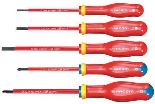 Szigetelt villanyszerelő csavarhúzó készlet 1000 V-ig terjedő feszültség alatti munkákhoz. Nagyobb kopásállóság. Puha nyél a nagyobb kényelemért és a vegyszerekkel szembeni ellenálló képességért. A penge felületkezelésének (cink-nikkel-króm) köszönhetően a csavarhúzók akár négyszer ellenállóbbak a korrózióval szemben. A CNC-megmunkálás biztosítja a csavar jobb beállítását, azaz nagyobb nyomatékátvitel és kisebb kopás.