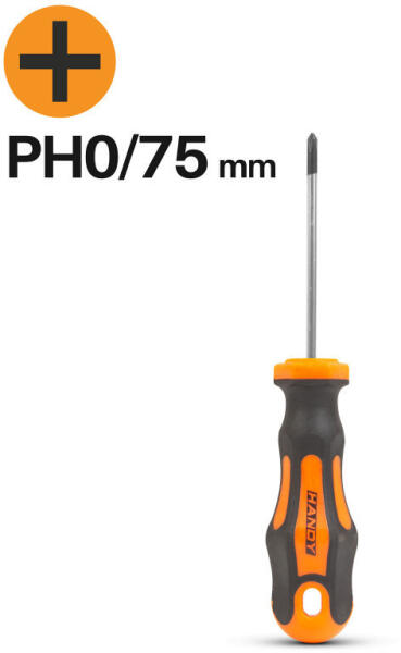 Legyen a munka könnyű! A megfelelő szerszám ehhez elengedhetetlen kellék. Ennek a csavarhúzónak a markolata, a kényelmes fogás és erőkifejtés érdekében formatervezett, amely elősegíti a megfelelő erő kifejtését munka közben. Króm-vanádium szár Ultra kényelmes és csúszásmentes fogantyú Akasztólyukkal Fej méret: PH0 Szárhossz: 75 mm