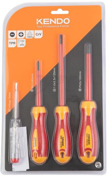 Kendo VDE szigetelt csavarhúzó készlet 3+1r. SL+PH+fázisceruza No. 20481 (20481) - solnaiparcikk