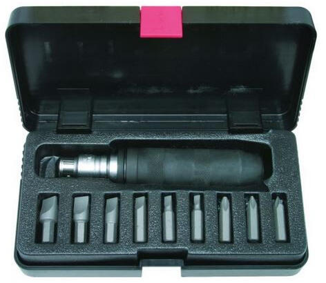 Ütve csavarhúzó készlet, lapos+PH, 1/2"+5/16", 6FL+3PH, 11 részes. A Csavarhúzóra mért ütés következtében lazítja, illetve meghúzza a csavart, célszerű visszacsapás mentes kalapács használata. Felhasználási terület
