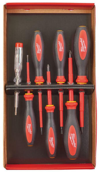 Milwaukee VDE Csavarhúzó 3 oldalú markolattal 7 darabos készlet (SL2, 5, SL3, SL4, PH2, PZ1, PZ2 Teszter) (4932478738)
