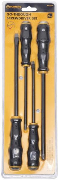 Somogyi Elektronic WORKSITE WT2024 átmenő csavarhúzó készlet, hosszú szárú, 4db, lapos és csillag fejek, mágneses és edzett