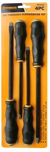 Somogyi Elektronic WORKSITE WT2024 átmenő csavarhúzó készlet, hosszú szárú, 4db, lapos és csillag fejek, mágneses és edzett WT2024 (WT2024)