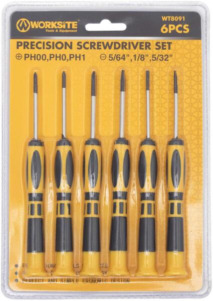 Somogyi Elektronic WORKSITE WT8091 műszerész csavarhúzó készlet, 6db, lapos és Phillips csillag fejek, precíziós feladatokhoz