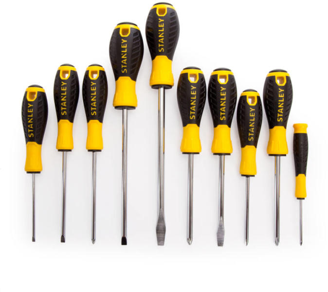 A STHT0-60211 egy 10 részes csavarhúzó-készlet az Essential sorozatból, mely a mindennapi használatra készült. A készlet különféle lapos, Phillips és Pozidriv hegyű csavarhúzókat tartalmaz. A szerszámok króm-vanádium acélból készültek, puha fogású (Soft-Grip) markolattal a kényelmes és biztonságos fogásért. Ideális választás otthoni és műhelyi szerelési feladatokhoz is. Jellemzők: