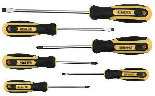 A Strend Pro csavarhúzókészlet nem hiányozhat muhelyébol. A készlet lapos csavarhúzókból és keresztcsavarhúzókból áll. Krómvanádiumból készült és mágnessel rendelkezik. PL 3 x 75; 5 x 100; 6 x 150 mmPH 0 x 75; 1 x 75; 2 x 100 mm