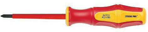 A Strend Pro villanyszerelo csavarhúzó nem hiányozhat a villanyszerelok, valamint a barkácsolók felszerelésébol. Ez egy PH0 x 60 mm-es csillagcsavarhúzó. A nyél csúszásgátló kezeléssel ellátott muanyagból készült és kényelmes fogást biztosít, felakasztható. Pengéje krómvanádiumból készült és mágnessel rendelkezik. Biztonságos szigetelést biztosít 1000 V-ig történo munkavégzésnél.