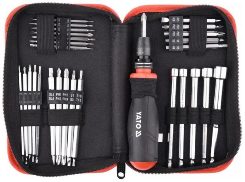 Anyag: CRV acél 28 darabos Tartalom: 7 db precíziós kétoldalas bit, 75 mm : PH000 x SL1.5, PH00 x SL2.0, PH0 x SL2.5, PH1 x SL3, T6 x T7, T8 x T9, H2.0 x H3.0 5 precíziós kétoldalas bit, 115 mm: PH000 x SL1.5, PH00 x SL2, PH0 x SL2.5, T6 x T7, T8 x T9 5 db 75 mm-es kétoldalas bit: SL5.0 x SL6.0, PH1 x PH2, PH2 x PH3, S1 x S2, H5 x H6 5 db 115 mm-es kétoldalas bit: SL5.0 x SL6.0, PH1 x PH2, PH2 x PH3, S1 x S3, T10 x T15 5 hosszú mágneses foglalat tartós CrV acélból: 6.0, 7.0, 8.0, 10.0, 12.0 mm Cipzárazható tok