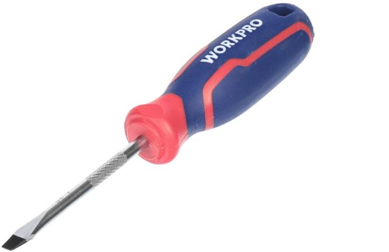 A WORKPRO lapos csavarhúzó hasznos segítőtárs az egyhornyú csavarok meghúzásához és lazításához. A biztos és csúszásmentes fogásnak köszönhetően precizitással és kényelemmel dolgozhat vele. Ez a csavarhúzó 76 mm-es szárhosszal rendelkezik, ami garantálja a kompakt méretet és az eszköz egyszerű tárolását.