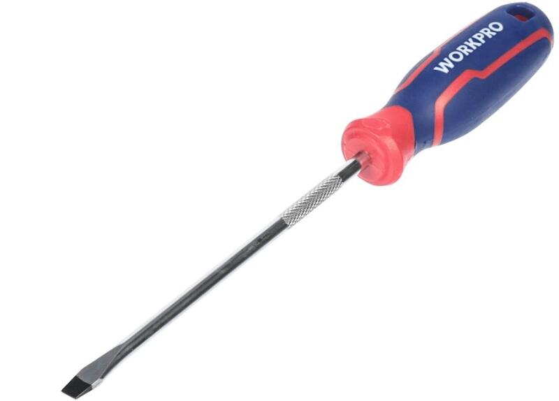 A WORKPRO lapos csavarhúzó hasznos segítőtárs az egyhornyú csavarok meghúzásához és lazításához. A biztos és csúszásmentes fogásnak köszönhetően precizitással és kényelemmel dolgozhat vele. Ez a csavarhúzó 152 mm-es szárhosszal rendelkezik, ami biztosítja a jó hozzáférést.