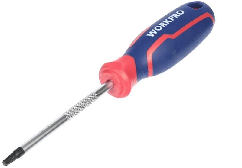 A WORKPRO Torx csavarhúzó, WP221165 modell, T25 Torx csavarokhoz készült. A markolat kényelmet és biztos, ergonomikus fogást biztosít, így nagyobb erő kifejtésére is lehetőség van a hatékonyabb nyomaték érdekében. A szár hossza 101 mm.