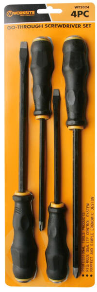 WORKSITE WT2024 átmenő csavarhúzó készlet, hosszú szárú, 4db, lapos és csillag fejek, mágneses és edzett - avplanet