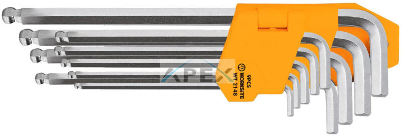Galéria - WORKSITE WT2148 gömbfejű imbuszkulcs készlet, 9db, hagyományos és gömbfejek, Cr-V acél